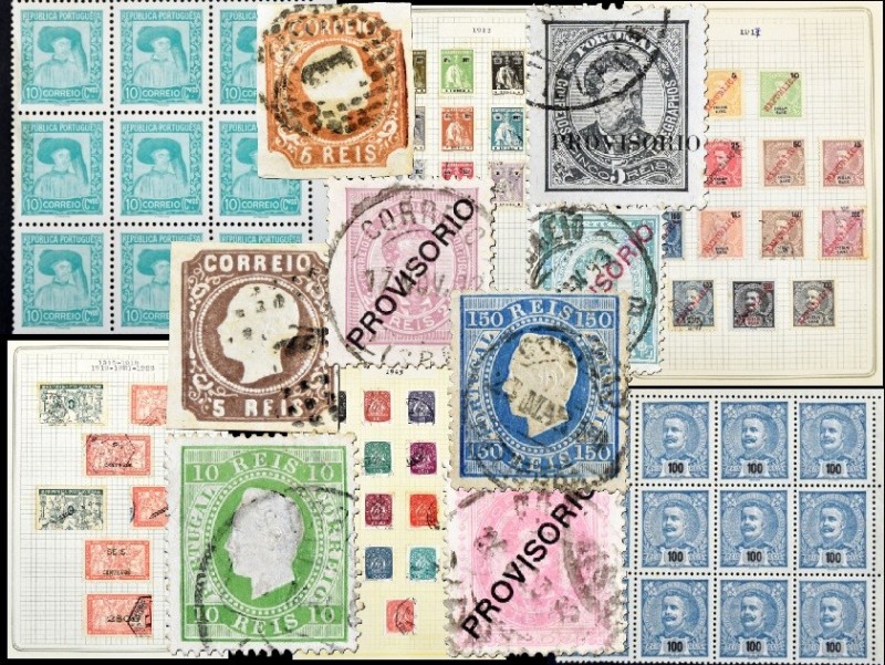 Conjunto de 73 selos com carimbos bem batidos da Monarquia e da primeira república. Bom valor de macrofilia.- Leilão: